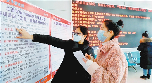 2月16日,江西省宜豐縣勞動就業(yè)局大廳,求職人員在了解招工信息。 聶云峰攝(中經(jīng)視覺)