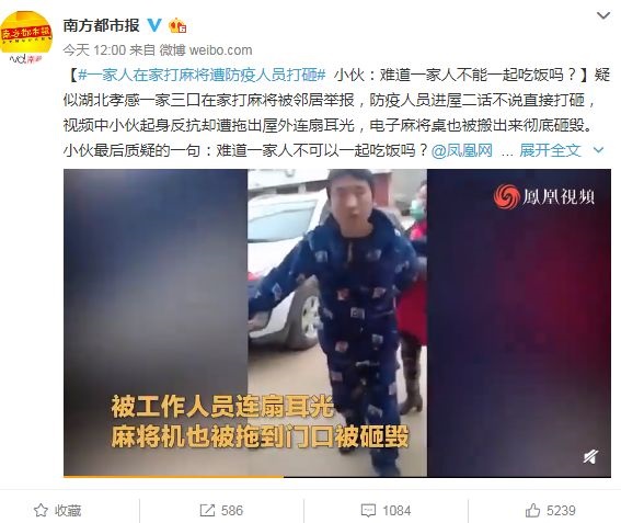 比如,一家三口在家里圍桌打麻將,突然有防疫工作人員進來,不由分說開始打砸,一位年輕人表示不服,竟被連抽幾個耳光;一位中年男子下樓買菜,進小區(qū)時拒絕登記,與工作人員產(chǎn)生沖突,最終被幾名工作人員摁倒在地;一位東北大娘在外溜達時沒戴口罩,與社區(qū)干部發(fā)生沖突,甚至拳腳相加,最終被戴上手銬抓進警車……