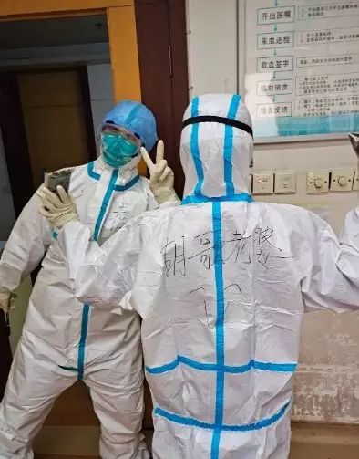每名醫(yī)護(hù)人員防護(hù)服上的字
