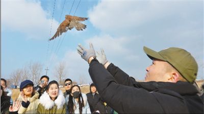 山東省青島市城陽(yáng)區(qū)野生動(dòng)植物保護(hù)志愿者在白沙河入??跐竦?,放歸一只救助的國(guó)家二級(jí)重點(diǎn)保護(hù)動(dòng)物紅隼。 王海濱攝