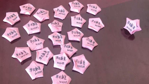 住進(jìn)武漢江夏區(qū)方艙醫(yī)院的輕癥患者不得不與家人隔離,不能出門(mén)活動(dòng),在初春的戶外仰望星空,暫時(shí)只能是一個(gè)愿望。2月20日的夜晚,夜班護(hù)士卻把“星星”帶進(jìn)了“方艙”!南京市中西醫(yī)結(jié)合醫(yī)院的護(hù)士王慧敏上班時(shí),向每一位患者贈(zèng)送了一個(gè)自己親手疊的許愿星,每一個(gè)“星星”都寫(xiě)上了祝福的話語(yǔ):“叔叔阿姨晚上好,這是我自己做的許愿星,祝愿你們?cè)缛湛祻?fù)!”