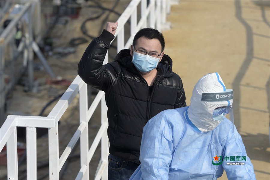 2月4日,萬先生充滿信心走進火神山醫(yī)院。中國軍網記者范顯海 攝