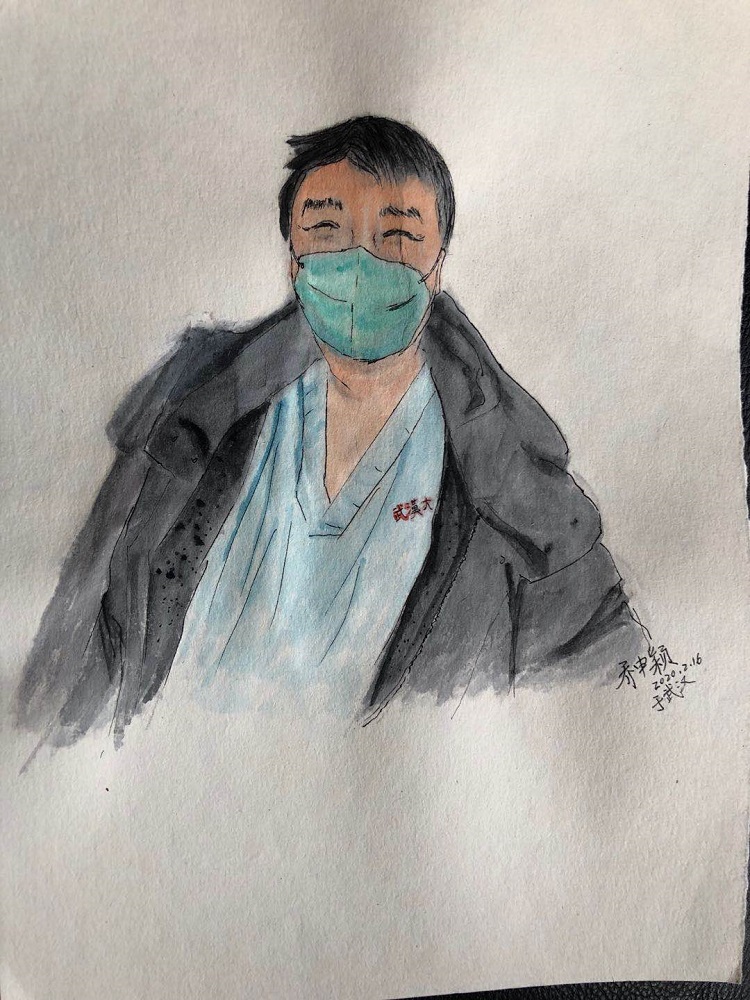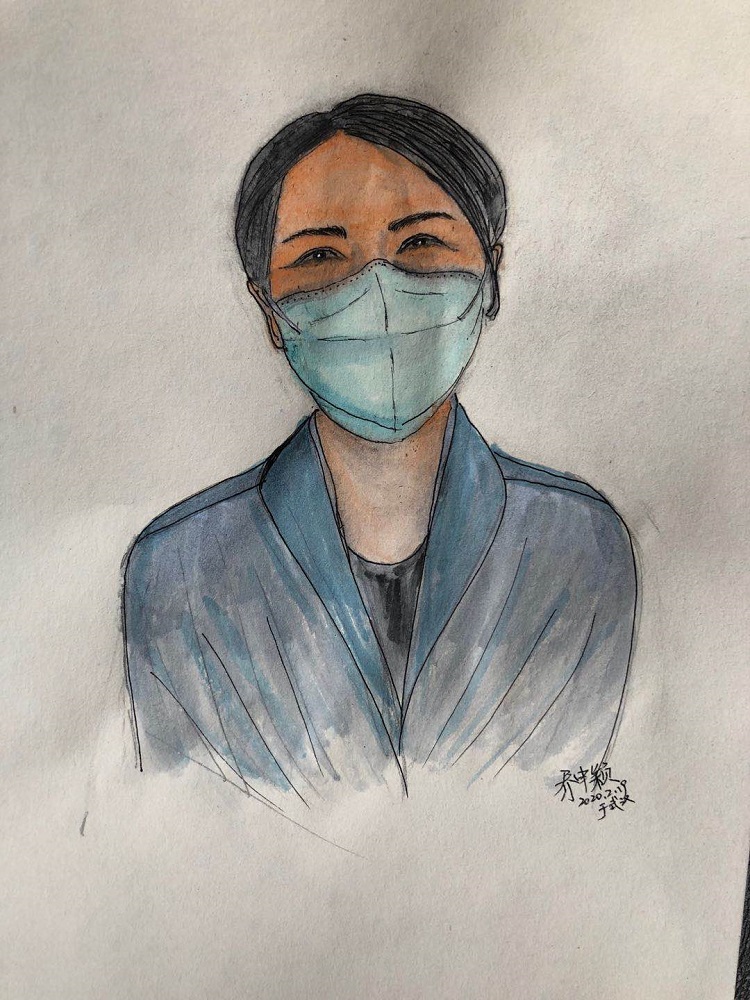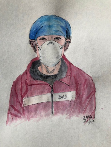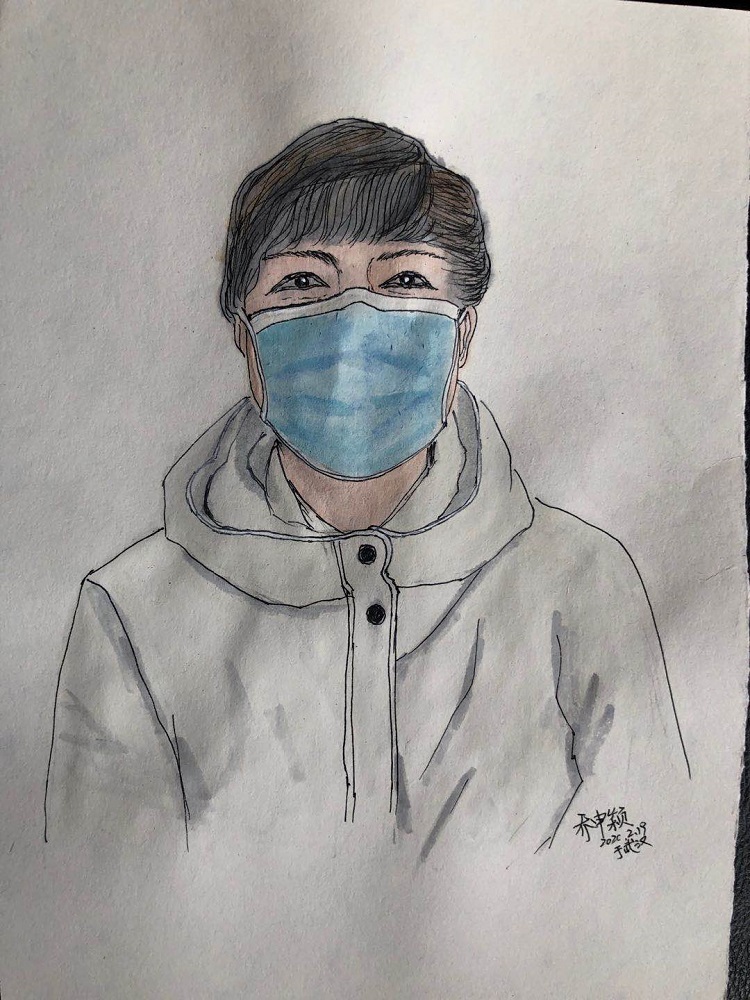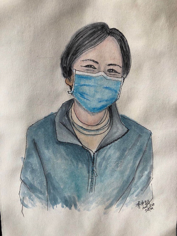 剛開始就是正常的寫稿拍視頻,隨著時間的推移,就特別想畫畫。這個城市里充滿了觸動心靈的瞬間,可能是一個笑臉,可能是一個手勢。我總覺得光是寫下來、拍下來,還遠遠不夠,只有把它畫下來,才真正能把我那一刻的感動也一起收藏起來。當時武漢根本買不到顏料,我請同事幫忙從北京帶過來,2月16號的時候開始畫。第一個想到的就是采訪過的醫(yī)護人員的笑臉。因為大家都崩得很緊,好多醫(yī)護人員采訪中說著說著就哭了。雖然對采訪來說可能是件好事,但我總感覺很愧疚,覺得為個采訪讓人又難過一次。后來就形成一個習慣,每次我都要問一個問題:今天有沒有開心的事呀?或者說:咱換個話題,說點高興的!他們給了我各種各樣的答案,但是不管是為什么高興,那一刻他們的笑容都特別燦爛特別美好。所以我把他們的笑畫了下來,希望更多的人能看到,能從中汲取力量。