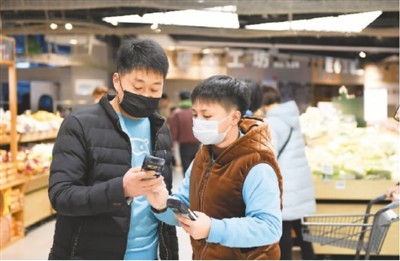 收到短信,家住北京朝陽的柯女士下了樓,不一會兒就拎了兩袋子菜回來?!把巯露加肁PP買菜了,安全方便,買一次夠吃兩三天?!彼f,除了買菜,還在線上訂了肉、雞蛋和水果,不出門咱也要講究營養(yǎng)搭配。