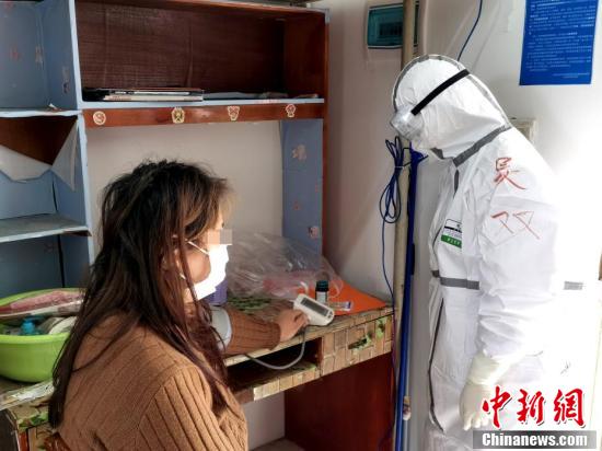 醫(yī)護人員為治愈出院患者測血壓。