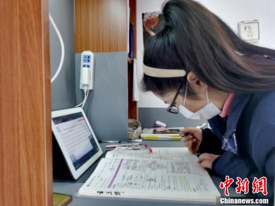 治愈出院患者在隔離點上網(wǎng)課。