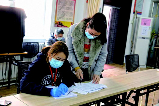 2月8日,盧溝橋街道工委書記高文娟在民岳家園社區(qū)回復(fù)“12345”群眾訴求,與社區(qū)工作人員一同記錄回復(fù)時(shí)間及訴求人反饋意見。 采訪對(duì)象供圖