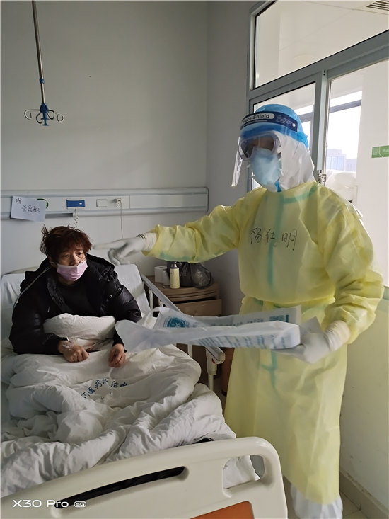 取咽拭子對(duì)操作者來說風(fēng)險(xiǎn)較大,他們就陪在年輕醫(yī)生身邊一起操作;高齡患者聽力不好,他們就俯身貼著老人耳朵講話;患者長(zhǎng)期住院情緒不佳,他們就拉著患者跳舞、打太極……在他們的影響帶動(dòng)下,患者積極配合治療,醫(yī)護(hù)人員也學(xué)會(huì)了如何與不同的病人溝通交流、如何處理棘手問題。