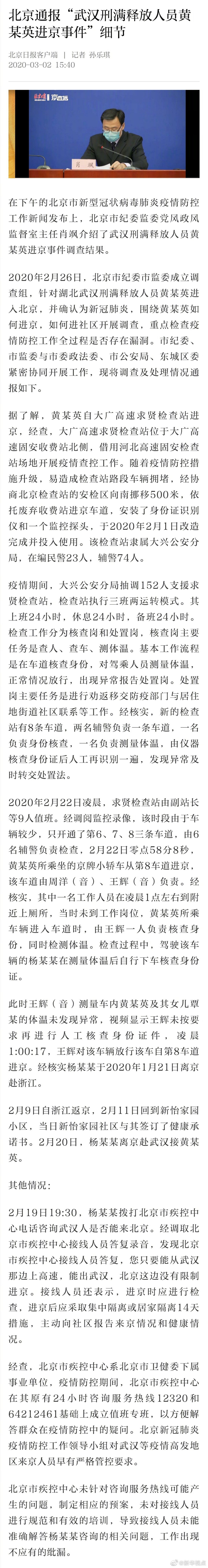北京通報“武漢刑滿釋放人員黃某英進(jìn)京事件”細(xì)節(jié)