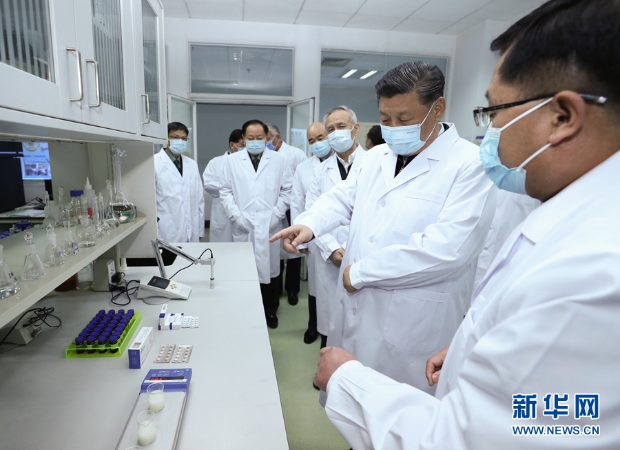 2日下午,習近平首先來到軍事醫(yī)學研究院,聽取研究院關于新冠肺炎疫情防控科研攻關的總體情況匯報,結合展板和實物了解疫苗和抗體研制、藥物篩選、病毒致病機理研究、快速檢測試劑研究和應用等進展情況。在儀器測試樓,習近平察看了重大疫情應急防控藥物研究室,向堅守崗位、奮力攻關的一線專家和科研人員表示親切慰問。他強調,提高治愈率、降低病亡率,最終戰(zhàn)勝疫情,關鍵要靠科技。習近平指出,新冠肺炎疫情發(fā)生以來,軍事醫(yī)學研究院堅決貫徹黨中央和中央軍委決策指示,聞令即動、爭分奪秒,集中力量展開應急科研攻關,取得了階段性成果,充分展現了人民軍隊忠于黨、忠于人民的政治本色和敢打硬仗、善打勝仗的優(yōu)良作風。習近平希望他們再接再厲,充分發(fā)揮突擊隊和主力軍作用,盡快研制出安全有效的疫苗、藥物、檢測試劑,全力滿足抗擊疫情需要。要堅持在疫情可溯、可診、可防、可治、可控方面合力攻關,通過打這場硬仗,掌握更多具有自主知識產權的核心科技,拿出更多硬核產品,為維護人民生命安全和身體健康、維護國家戰(zhàn)略安全作出更大貢獻。