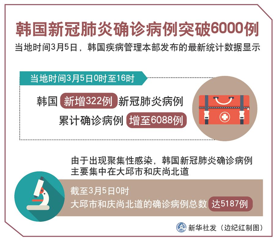 韓國新冠肺炎確診病例突破6000例-新華網(wǎng)