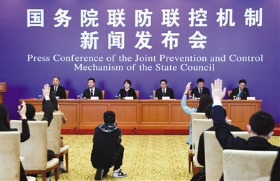 3月7日,國(guó)務(wù)院聯(lián)防聯(lián)控機(jī)制新聞發(fā)布會(huì)現(xiàn)場(chǎng),介紹農(nóng)民工返崗復(fù)工服務(wù)保障工作部署。新京報(bào)記者 吳寧 攝
