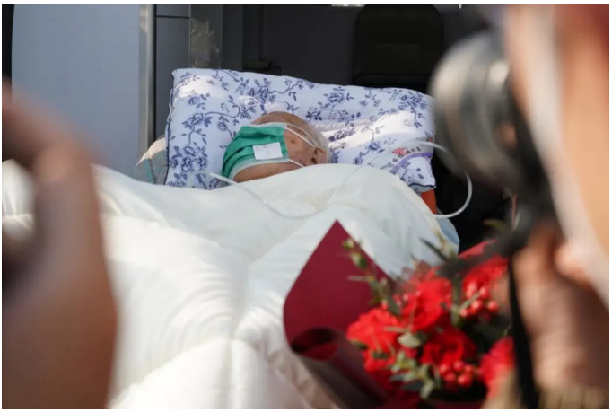 雖然老人新冠肺炎已經(jīng)治愈,但他同時還患有阿爾茲海默癥等多種疾病,失去了自主意識和行動能力,所以需要靠醫(yī)用平車和車輛進(jìn)行轉(zhuǎn)運。