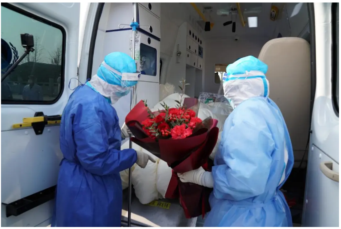 經(jīng)過軍隊支援湖北醫(yī)療隊醫(yī)護(hù)人員全力救治,3月7日下午,一名100周歲的老人從湖北省婦幼保健醫(yī)院光谷院區(qū)治愈出院。
