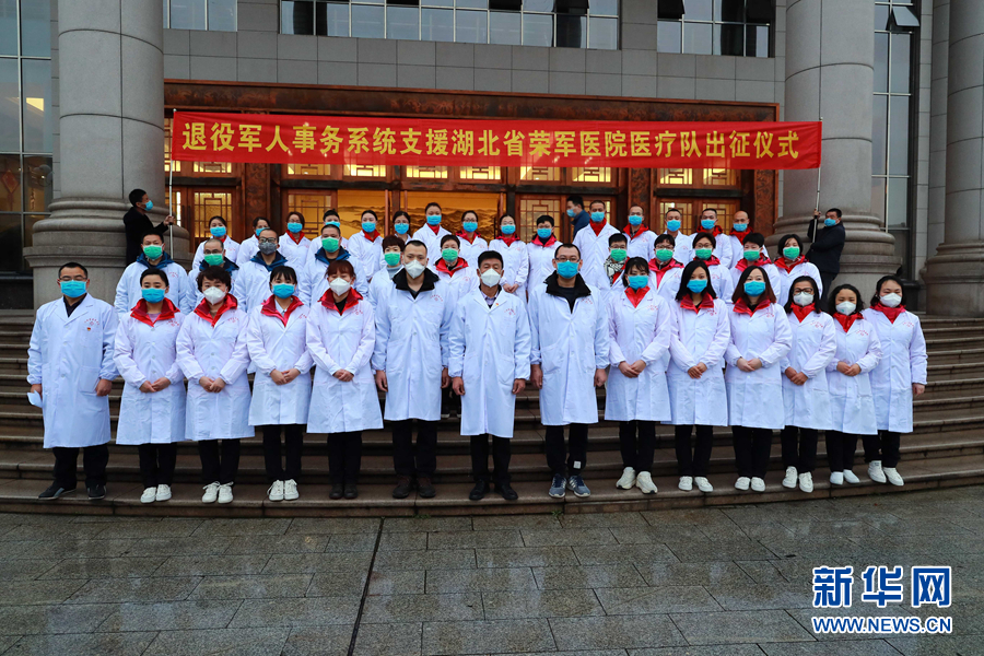 2月11日,退役軍人事務(wù)部組建首支醫(yī)療隊(duì)馳援湖北省榮軍醫(yī)院。這是出征儀式現(xiàn)場(chǎng)。新華社發(fā)(曹舒昊 攝)