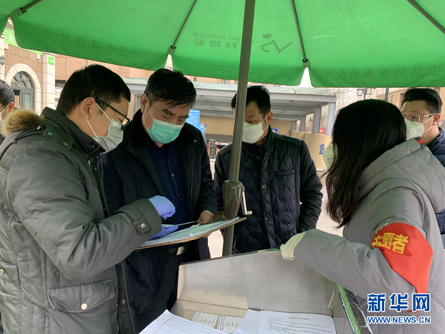 2月20日,天津市濱海新區(qū)政協(xié)副主席、應(yīng)急管理局黨組書記、局長(zhǎng)、退役軍人單玉厚(左二)生前在疫情防控一線工作。 新華社發(fā)