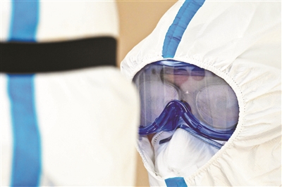 在隔離病房待了一會(huì)兒,流調(diào)員的護(hù)目鏡就起了霧氣。記者 付丁 攝
