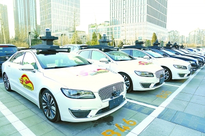 去年年底,在北京經(jīng)濟(jì)技術(shù)開發(fā)區(qū),準(zhǔn)備進(jìn)行自動(dòng)駕駛載人載物測(cè)試的車輛等候出發(fā)。新華社發(fā)