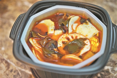“那次我先放發(fā)熱包,后加水,它反應(yīng)很快,蒸汽不斷往上冒出。我急忙把盛菜的塑料架架上去,一緊張,架子沒(méi)放好,有一部分插入到下層的水里,石灰水混進(jìn)了食物。我的手還被蒸汽燙了一下。”伍女士回憶起第一次吃自熱火鍋時(shí)的“翻車現(xiàn)場(chǎng)”,自熱菜混入了石灰水,只好整盒丟掉。