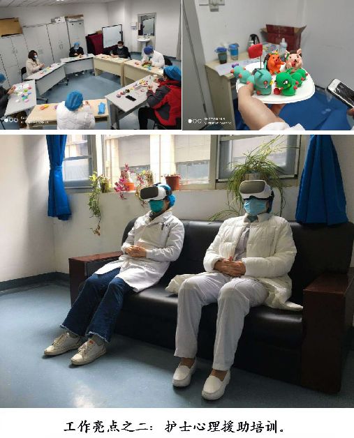 武漢大學人民醫(yī)院東院根據(jù)專家組提供的方案,制定了本單位具體實施方案,在醫(yī)院員工休息區(qū)開設醫(yī)務人員心靈驛站,營造溫馨輕松環(huán)境(房間布置、花、食物等),播放有關心理健康知識、放松訓練、心理干預技巧音頻視頻,為來訪人員提供生物反饋、音樂治療、放松訓練、智能心理減壓放松系統(tǒng)(虛擬現(xiàn)實)、手工制作等心理健康服務。心靈驛站為醫(yī)護工作者在繁忙的臨床工作后,提供了一個休養(yǎng)生息、溝通交流、鼓勁加油的場所,有效緩解了醫(yī)護人員緊張、焦慮等情緒。