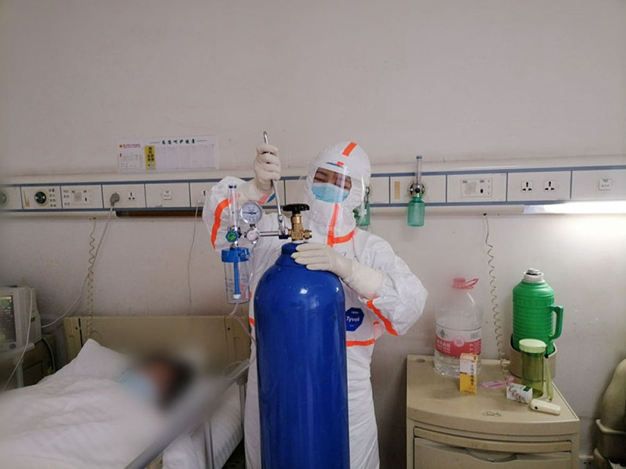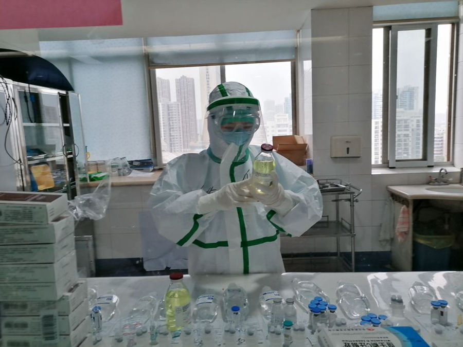 圖為四川大學(xué)華西醫(yī)院援湖北醫(yī)療隊(duì)醫(yī)務(wù)人員銀鈴在工作中。