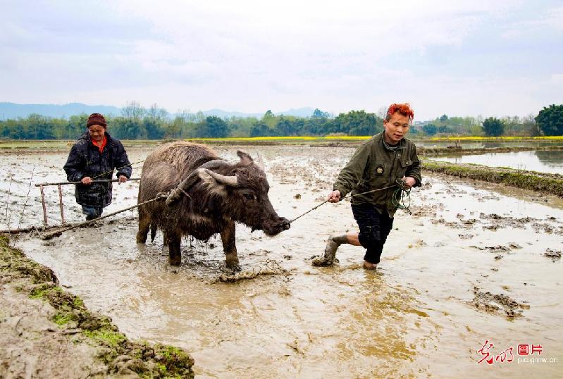 春分時節(jié),人們珍惜當下光陰辛勤勞作,許下來年五谷豐登的美好心愿。(張倩)