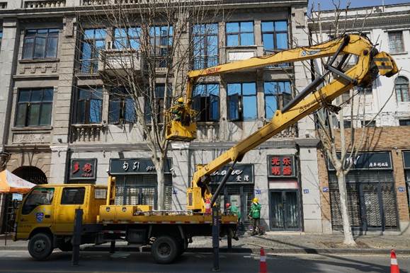 認(rèn)真修剪沿途的每一棵法桐樹