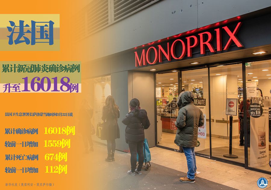 新華社巴黎3月22日電(記者陳晨)法國衛(wèi)生總署署長薩洛蒙22日說,法國累計新冠肺炎確診病例16018例,較前一日增加1559例。