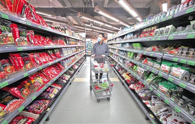 3月22日,武漢國際廣場武商超級生活館內(nèi)一位顧客在購買生活用品。光明日報武漢一線報道組記者 季春紅攝/光明圖片