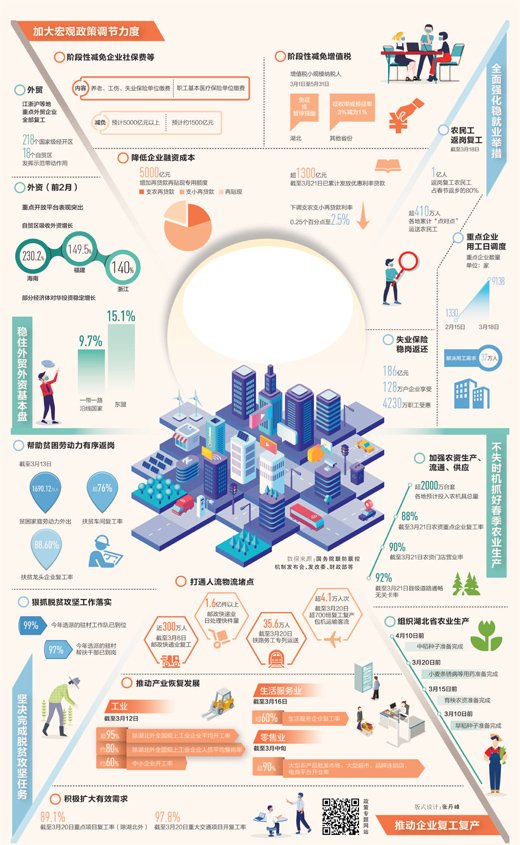 一個月以來,各地各部門分區(qū)分級精準(zhǔn)復(fù)工復(fù)產(chǎn),圍繞中小微企業(yè)、農(nóng)民工、高校畢業(yè)生、外商等出臺針對性措施,加大支持力度。本版推出數(shù)據(jù)可視化融媒體報道,展現(xiàn)生產(chǎn)生活秩序加快恢復(fù)的態(tài)勢和積極成效。