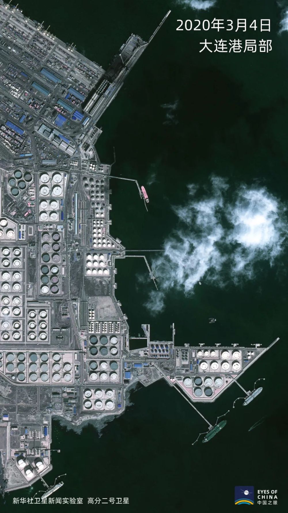 大連港新港油品物流區(qū),可滿足世界上最大的ULCC級(44萬噸級“泰歐”輪)油輪滿載進(jìn)港靠泊作業(yè)的45萬噸原油碼頭,以及10萬噸LNG碼頭和15萬噸成品油碼頭,全部??恐?。