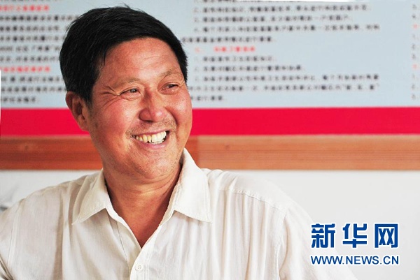 王坤友在村委會辦公室內(nèi)(資料照片)。新華社發(fā)