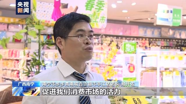 廣西南寧市步步高南城百貨超市亭江店店長 易開佐:通過這個活動,給我們消費者帶來更多的實惠,同時也促進我們企業(yè)復(fù)工復(fù)產(chǎn),促進我們這個消費市場的活力。