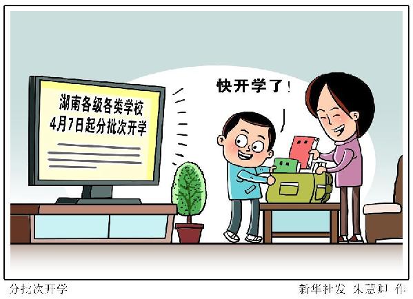新華社長沙3月28日電(記者袁汝婷)湖南省教育廳27日晚通報(bào),經(jīng)湖南省委、省政府同意,全省高三年級、初三年級于4月7日開學(xué)。之后,湖南各市州根據(jù)本地疫情情況,按照中學(xué)其他年級、小學(xué)、幼兒園的順序,明確轄區(qū)各縣市區(qū)中小學(xué)其他年級和幼兒園錯(cuò)時(shí)錯(cuò)峰開學(xué)時(shí)間。高校在其所在城市的中小學(xué)基本開學(xué)后開學(xué)。