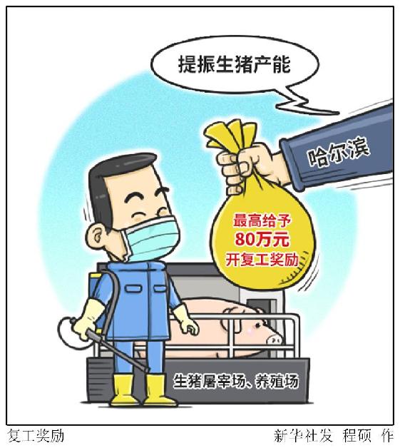 新華社哈爾濱3月28日電(記者強勇)記者從哈爾濱市政府了解到,為提振疫情影響下的生豬產(chǎn)能,今年哈爾濱市將完成360萬頭生豬養(yǎng)殖任務(wù),并對日均屠宰量500頭以上的生豬定點屠宰廠給予最高80萬元一次性開復(fù)工獎勵。