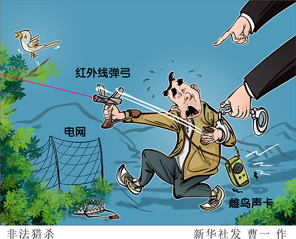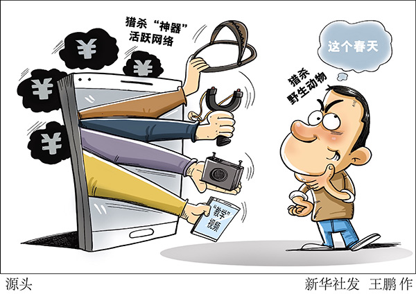 一個彈弓配上精準(zhǔn)的紅外線瞄準(zhǔn)儀,保證“百發(fā)百中”;一張聲卡匯集數(shù)十種雌鳥聲,2000米外能遙控指揮;精心設(shè)下的捕獵夾,等著野生動物來“斷腿”……嚴(yán)寒過后,萬物復(fù)蘇的春天悄然來到。然而,對于野生動物們來說,等待它們的除了和風(fēng)細(xì)雨,還有一些人精心設(shè)下的“天羅地網(wǎng)”。