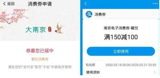 目前消費(fèi)券的使用方法主要分為兩種,一種是在線下消費(fèi)時(shí),點(diǎn)擊“使用”事先獲得的消費(fèi)券并提供給商家,以抵扣部分消費(fèi)金額;而另一種方式則更為便捷,消費(fèi)券會(huì)保存在用戶的支付App上,在日后進(jìn)行支付時(shí)直接自動(dòng)減免一定數(shù)額的消費(fèi),而不需要進(jìn)行更多操作。