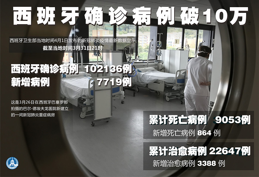 新華社馬德里4月1日電(謝宇智)西班牙衛(wèi)生部4月1日發(fā)布的新冠肺炎疫情最新數(shù)據(jù)顯示,該國(guó)累計(jì)確診病例已超過10萬(wàn)例;單日新增死亡864例,創(chuàng)疫情暴發(fā)以來(lái)的新高。