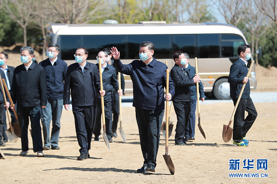 4月3日,黨和國(guó)家領(lǐng)導(dǎo)人習(xí)近平、李克強(qiáng)、栗戰(zhàn)書、汪洋、王滬寧、趙樂(lè)際、韓正、王岐山等來(lái)到北京市大興區(qū)舊宮鎮(zhèn)參加首都義務(wù)植樹(shù)活動(dòng)。 新華社記者 龐興雷 攝