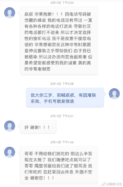 后來,老人每天打電話給所有跟他聯(lián)系過的志愿者,說需要什么物資。而當(dāng)他們定期回訪其他求助者時(shí),大部分人都會(huì)說,不需要幫助了,謝謝你們。樓威辰漸漸覺得老人自私貪婪,就不再接電話了。