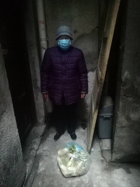 樓威辰給獨(dú)居老奶奶送物資。