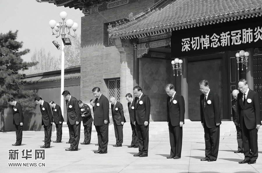 4月4日上午10時,習(xí)近平、李克強、栗戰(zhàn)書、汪洋、王滬寧、趙樂際、韓正、王岐山等黨和國家領(lǐng)導(dǎo)人在中南海懷仁堂前,同全國各地各族人民一起,向抗擊新冠肺炎疫情斗爭犧牲烈士和逝世同胞默哀。 新華社記者 李學(xué)仁 攝