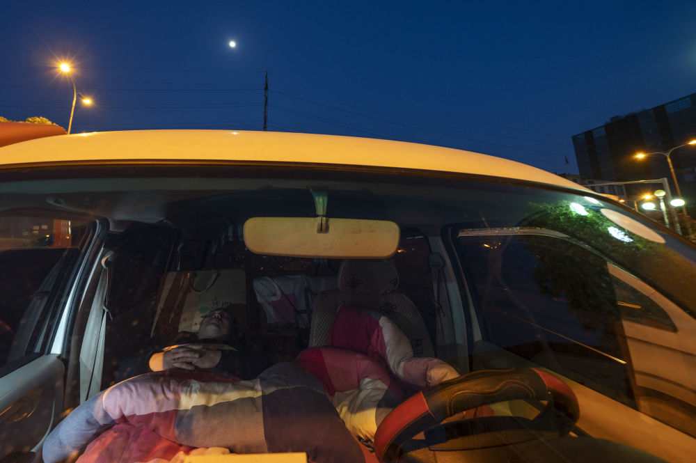 ↑3月7日,入夜之后,馬增辰在自己的面包車(chē)上進(jìn)入了夢(mèng)鄉(xiāng)。此時(shí),一輪明月爬上了半空。