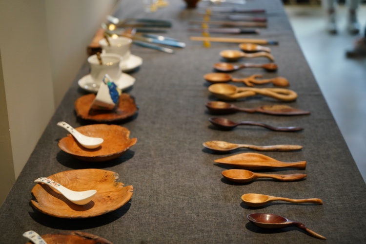 上海浦東新區(qū)唐鎮(zhèn)文化創(chuàng)藝中心內(nèi)的文智工坊創(chuàng)意體驗中心展示的各種勺子和筷子。(上海浦東新區(qū)文產(chǎn)促進(jìn)中心供圖)