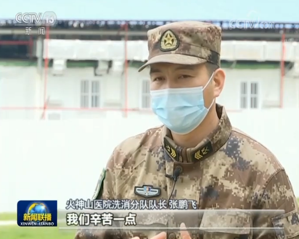 火神山醫(yī)院洗消分隊隊長 張鵬飛:我們要保證醫(yī)務(wù)人員安全,我們要保證病區(qū)安全。我們認(rèn)真一點(diǎn),我們負(fù)責(zé)一點(diǎn),我們辛苦一點(diǎn),他們就會少一絲隱患。