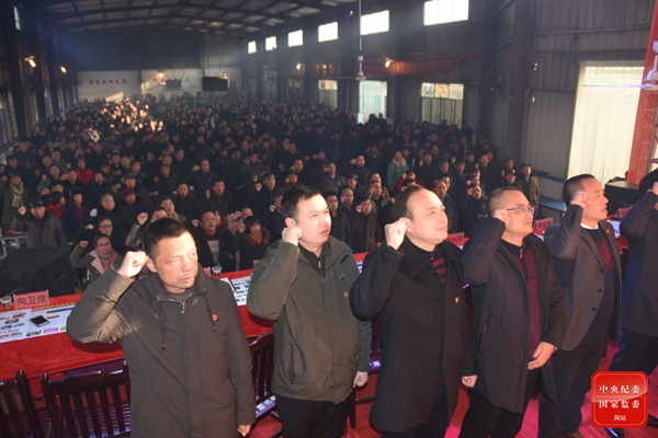 2019年1月,向衛(wèi)煌(前排左一)在雙峰縣井字鎮(zhèn)黨員冬訓(xùn)大會上重溫入黨誓詞。