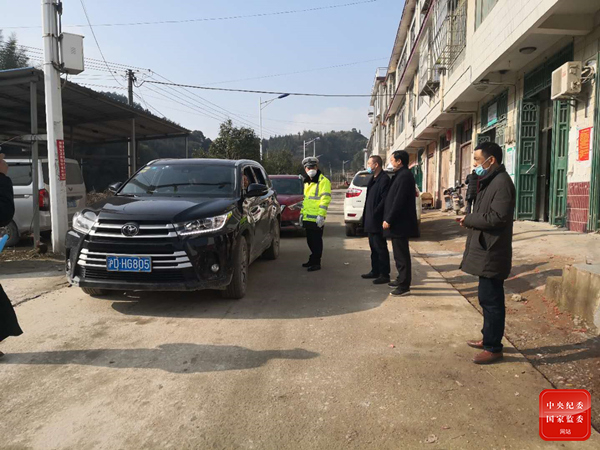 2月12日,向衛(wèi)煌在荷葉鎮(zhèn)益新村督查疫情防控措施落實情況。