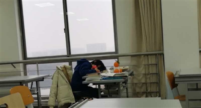 學(xué)生在自習(xí)室休息