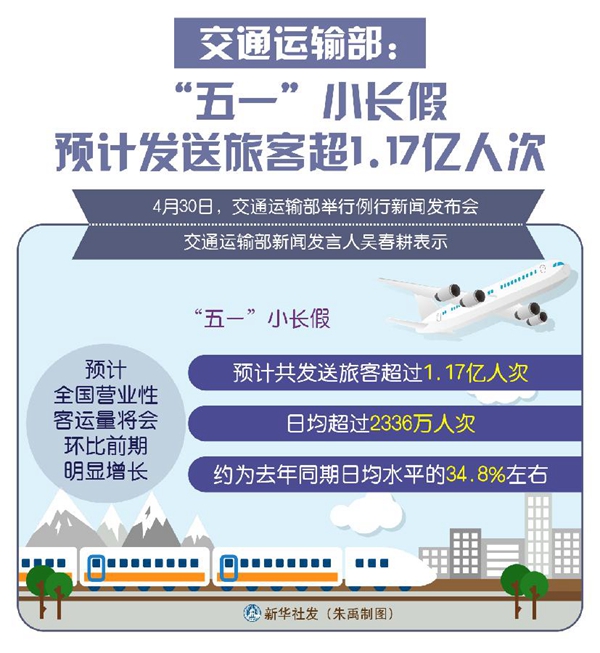 新華社北京4月30日電(記者樊曦、魏玉坤)30日,交通運(yùn)輸部舉行例行新聞發(fā)布會。交通運(yùn)輸部新聞發(fā)言人吳春耕表示,“五一”小長假,預(yù)計(jì)全國營業(yè)性客運(yùn)量將會環(huán)比前期明顯增長,預(yù)計(jì)共發(fā)送旅客超過1.17億人次。