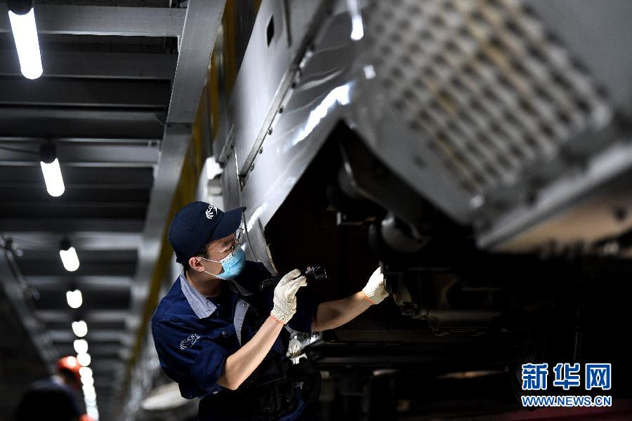 4月29日夜,合肥南動車運用所的工作人員對動車組進行檢修。新華社記者劉軍喜攝